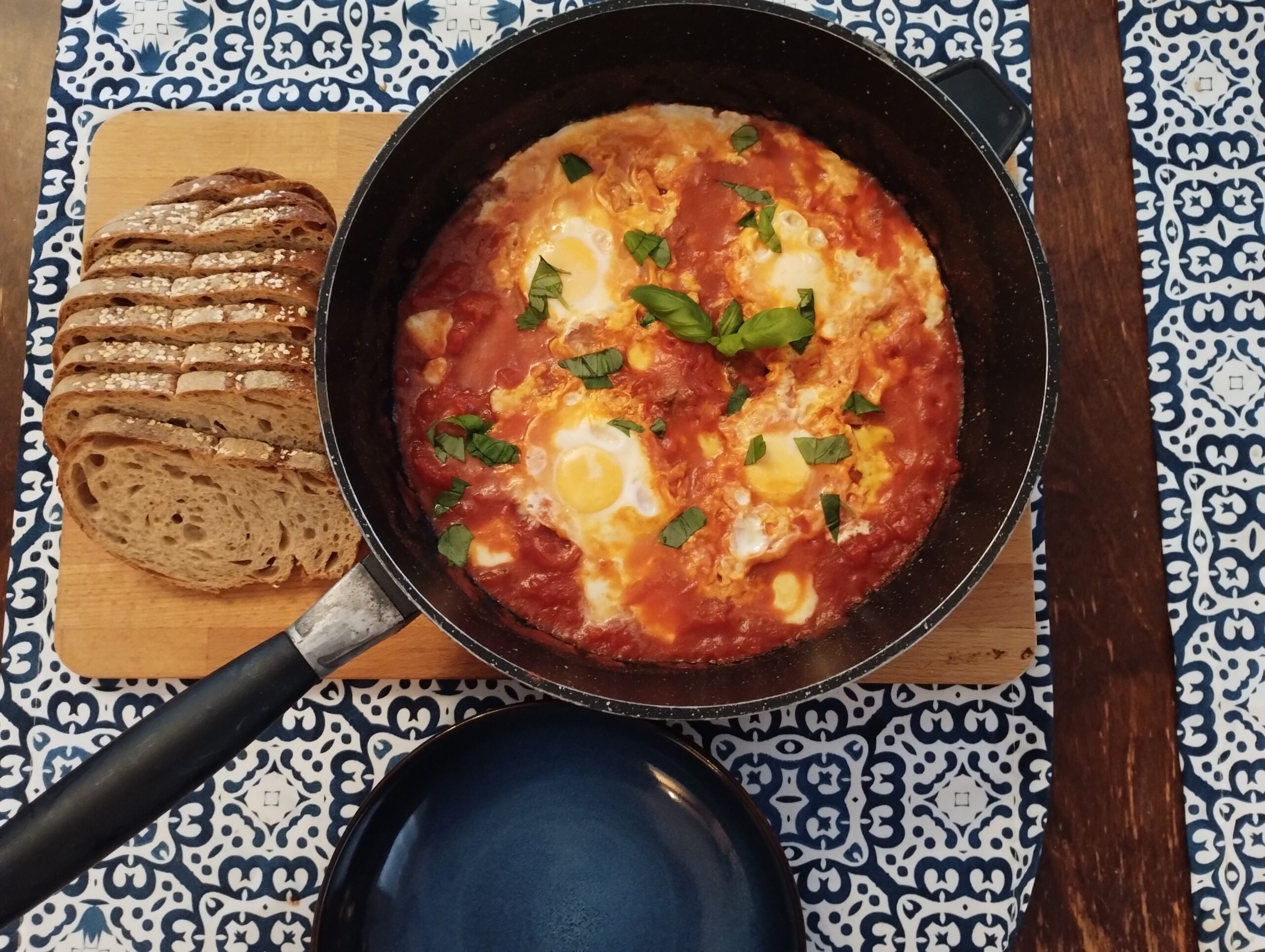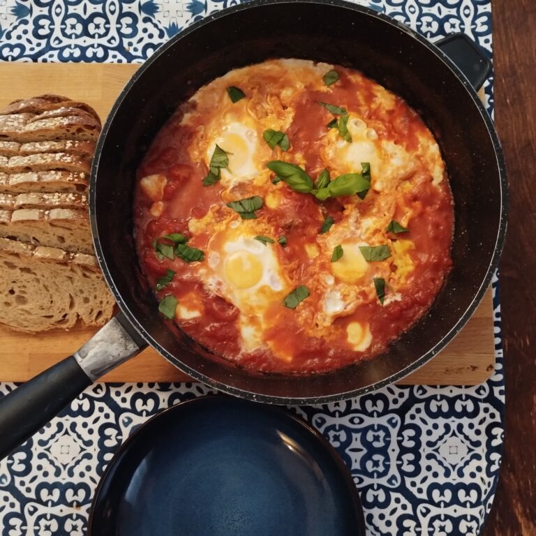 Składniki: świeże zioła (można użyć suszonych): przyprawy: Do żeliwnego garnka / patelni wkładamy pomidory, dodajemy posiekany czosnek oraz przyprawy: sól, kumin, pieprz i kurkumę. Całość doprowadzamy do wrzenia, dodajemy gałązki tymianku. Całość odparowujemy aż do …