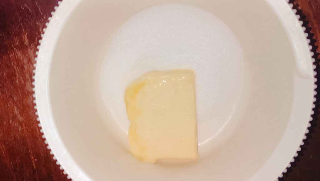 Do miski włożyć miękkie masło o temperaturze pokojowej i erytrytol – całość rozetrzeć na gładką masę.