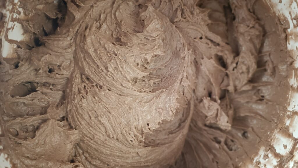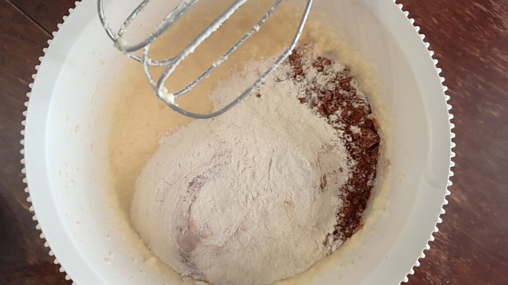 Następnie dodać resztę składników, czyli: mąkę, dobrze wystudzoną kawę oraz kakao.
